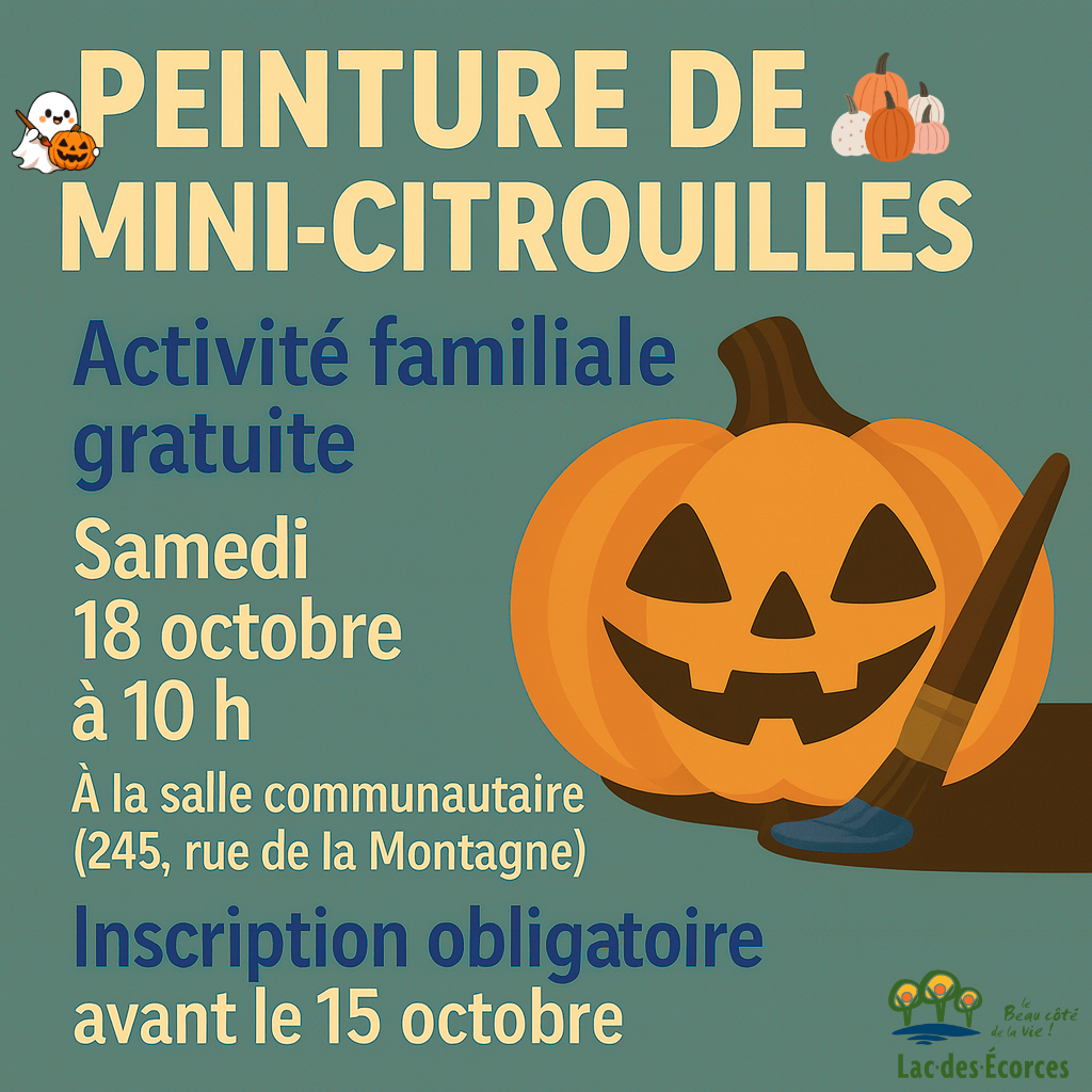 L’Halloween approche!! La municipalité vous offre des citrouilles à peindre en famille. Une activité ludique qui vous permettra de repartir avec une décoration unique! Merci