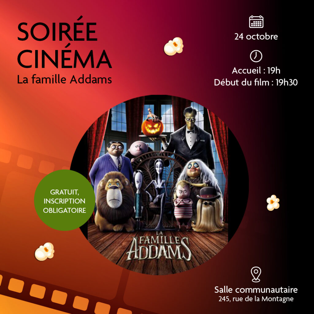 Vendredi, le 24 octobre prochain, viens passer la soirée avec et tes amis! Dans une ambiance d’Halloween, le film d’animation La famille Addams sera présenté à la salle communautaire. Apporte ta couverture/doudou et tes coussins pour t’installer confortablement. L’activité est gratuite et nous fournissons popcorn, chips, friandises et breuvages !! Pour nous aider dans notre […]