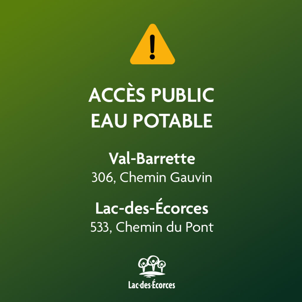 En raison de la sécheresse exceptionnelle que nous connaissons actuellement, plusieurs puits de notre territoire sont à sec ou présentent un niveau critique. Afin de soutenir les citoyennes et citoyens touchés, la Municipalité met à disposition deux points d’accès à de l’eau potable : Lac-des-Écorces : 533, ch. du Pont Val-Barrette : 306, ch. Gauvin Apportez vos […]