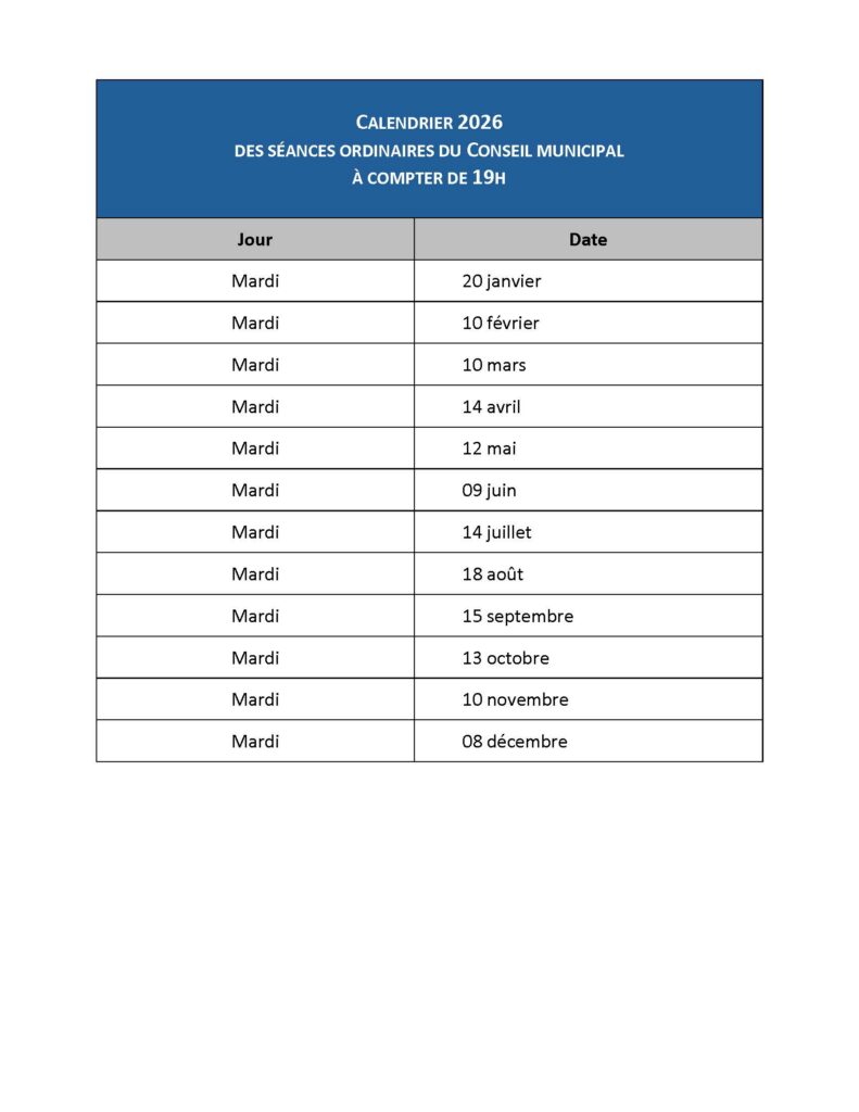 Accueil – Ma municipalité – Conseil municipal – Calendrier des séances ordinaires du conseil
